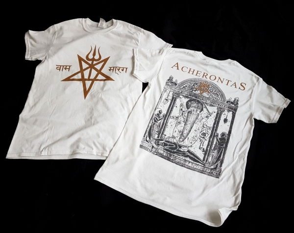 Official Acherontas Merchandise!- white shirt with front and back print (gold & grey)